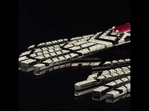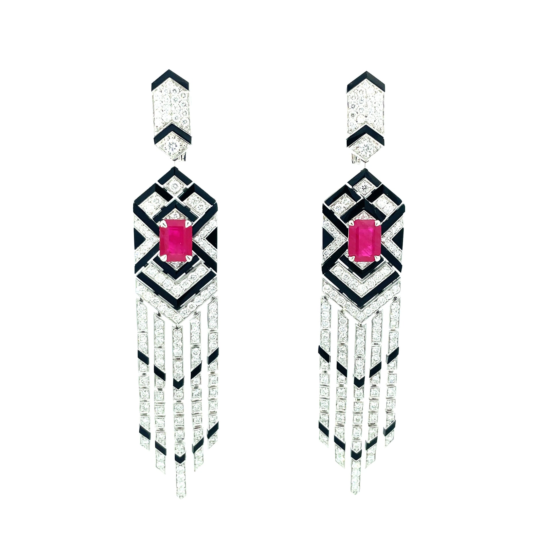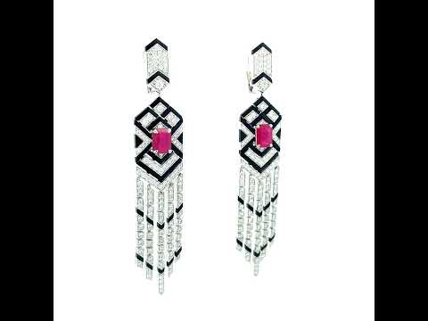 White Gold White Diamond Ruby Onyx Statement Earrings