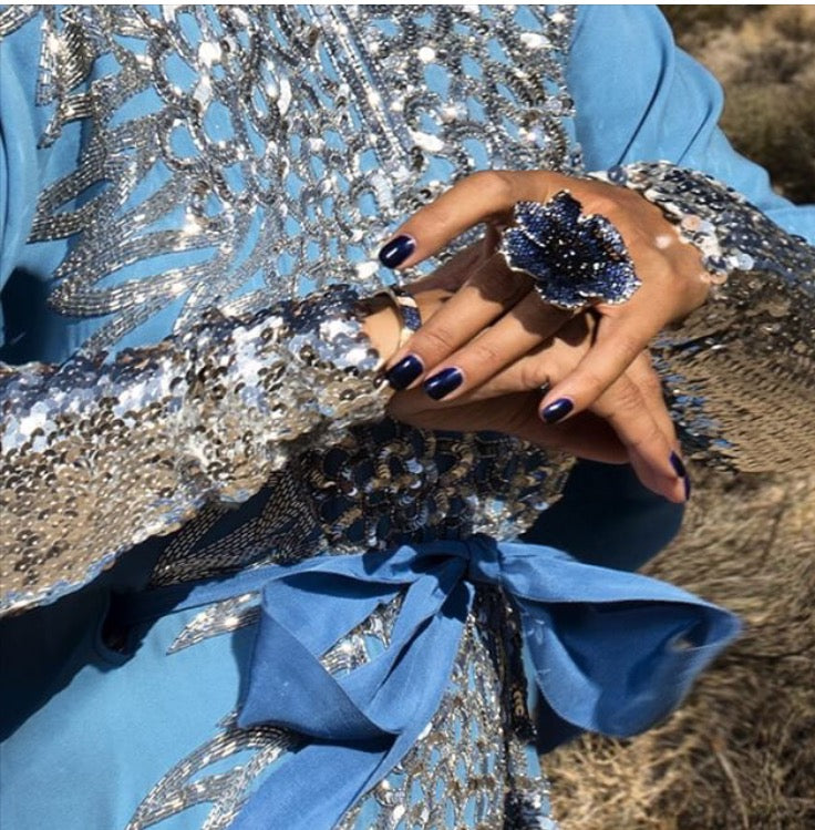 White Gold White Diamond Blue Sapphire Blue Iolite Two Fingers Ring From Flower Collection