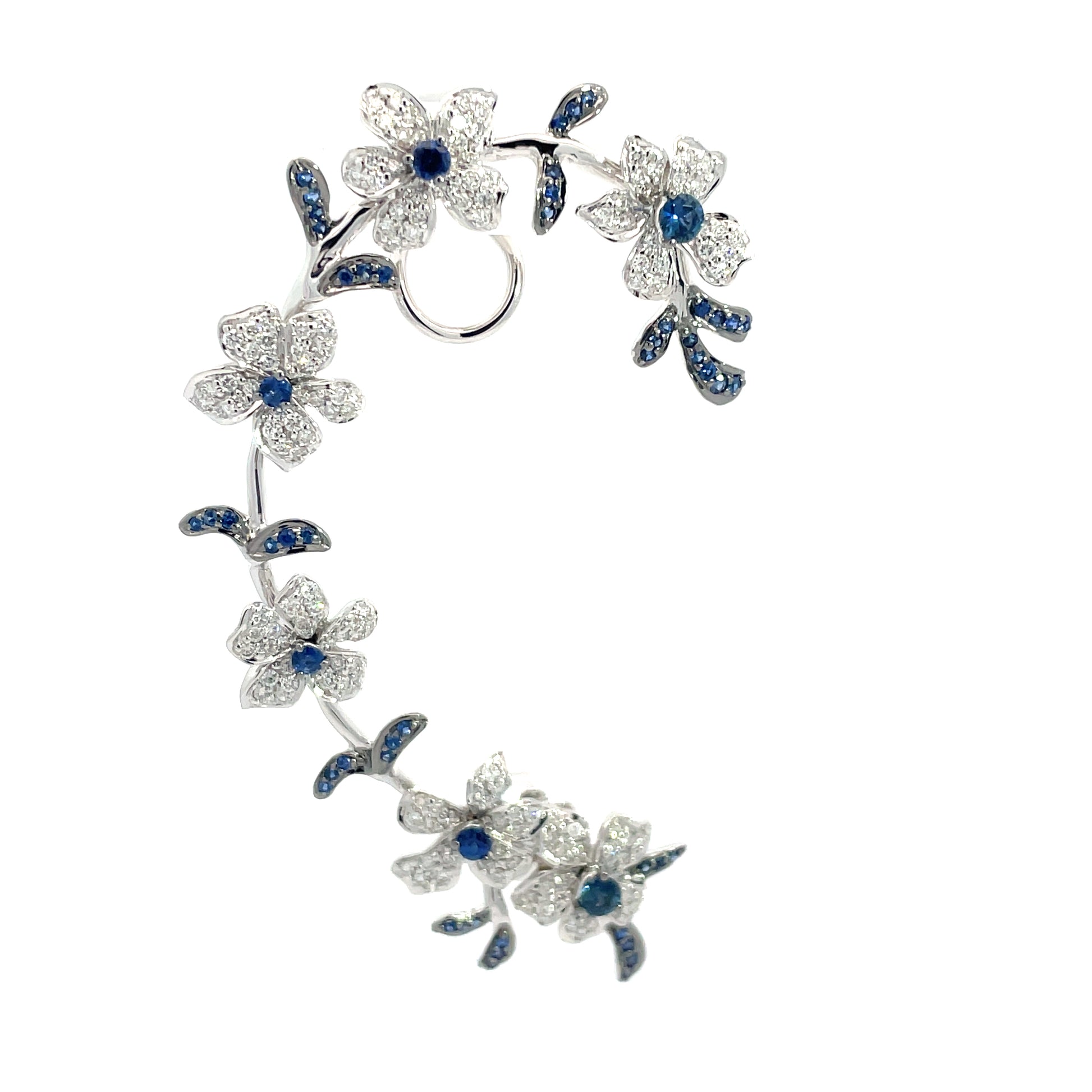 White Gold with White Diamond and Blue Sapphire Ear Cuff from Flowers Collection