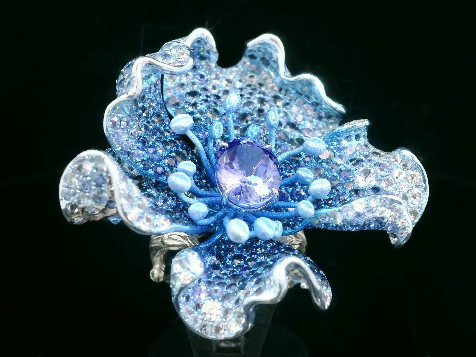 White Gold with White Diamond & Blue Sapphire & Green Garnet & Tanzanite Ring from Flowers Collection