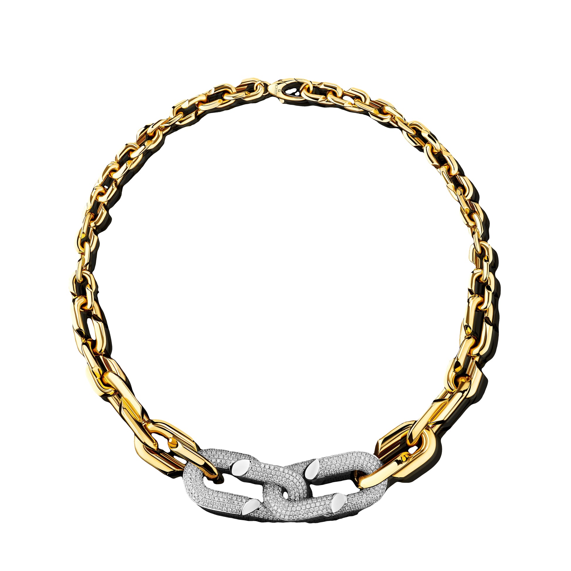 Yellow and White Gold with White Diamond Necklace from Link Collection